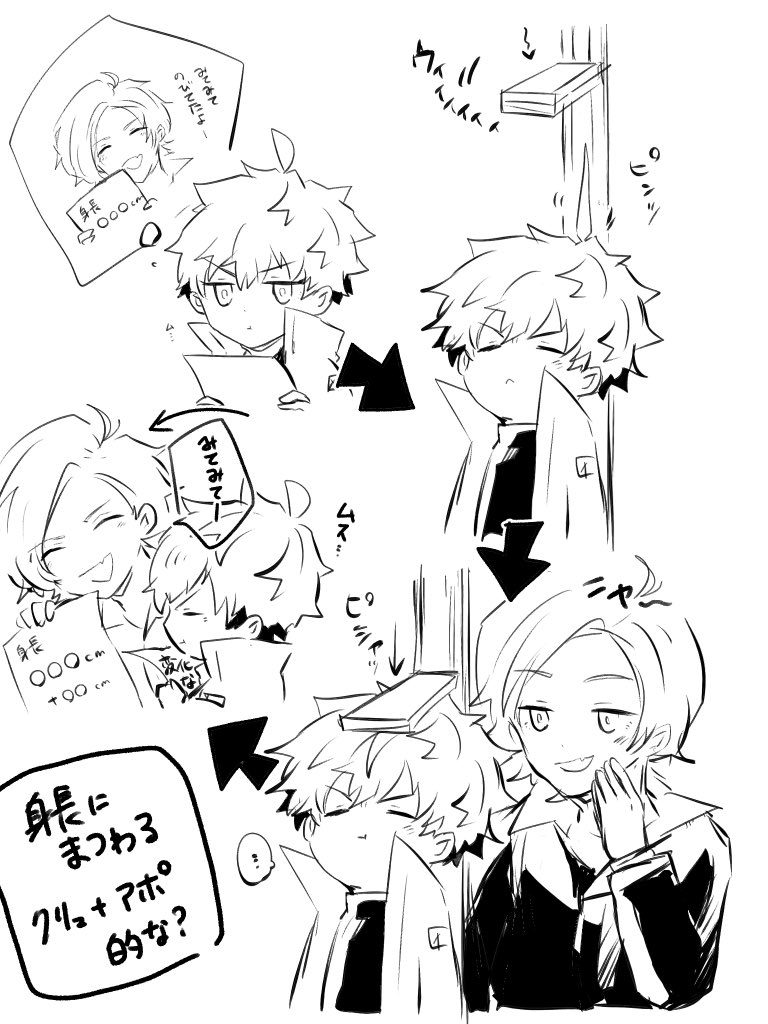 *2021 後半 落書き① 1週間twitterで遊んでいました。落書きたち。 ▼▼▼ ▼ウインクへたくそで両目閉じちゃうお兄ちゃんとかかわいいよねってお話してました。 ▼クリュ+アポのナンバーズなる前のお話とかも見たいですねってお話でした。身長のびないお兄ちゃん。